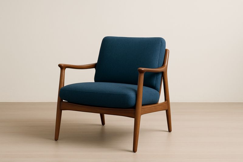 Poltrona in Legno di Quercia con Rivestimento in Tessuto Poliestere Blu