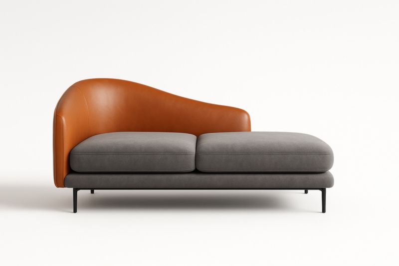 Questo chaise longue è realizzato con una seduta in tessuto poliestere grigio e uno schienale in similpelle marrone. La struttura è in acciaio. L'imbottitura della seduta è in schiuma poliuretanica ad alta densità. Il design dello schienale è a curva integrata. Dimensioni complessive: 180 cm di lunghezza, 85 cm di profondità e 70 cm di altezza. Il carico massimo supportato è di 120 kg. Consigliato pulire con un panno umido e evitare l'esposizione diretta al sole.