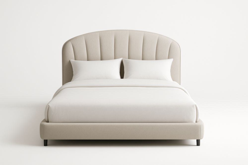 Letto matrimoniale imbottito in tessuto beige 160x200 cm