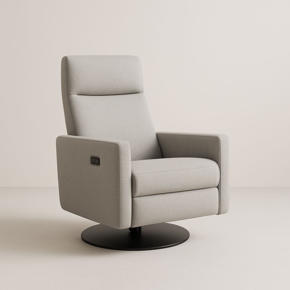 Poltrona reclinabile in tessuto grigio con braccioli regolabili